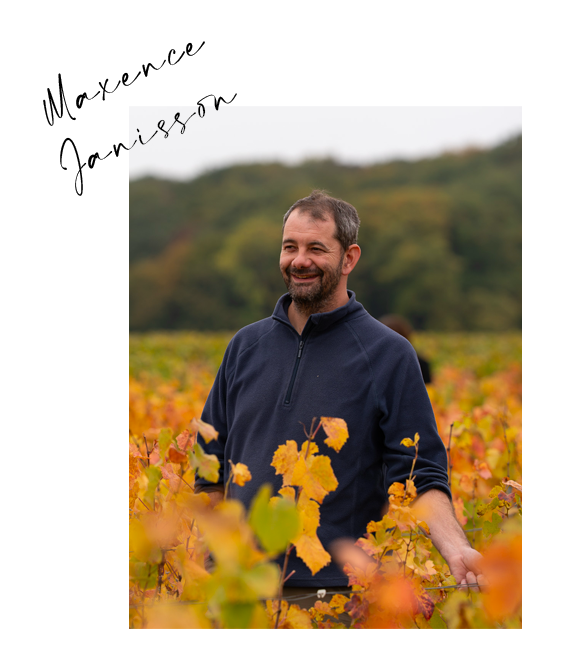 Maxence Janisson est une étoile montante dont la démarche allie précision et expression naturelle. Sur un vignoble conduit en agriculture biologique, il cherche à révéler avec justesse la minéralité vibrante et l’énergie saline de ses sols argilo‑crayeux. Son approche laisse le fruit parler sans artifice, avec un sens profond de l’équilibre et de la tension vinique